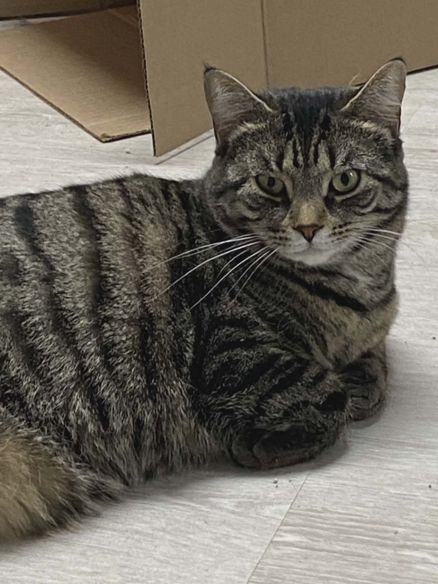 These girls were rescued from a terrible living situation. They were confined to a room with numerous other cats with no litter boxes and limited food. They were terrified when they first arrived and often would hide when you would enter the room.